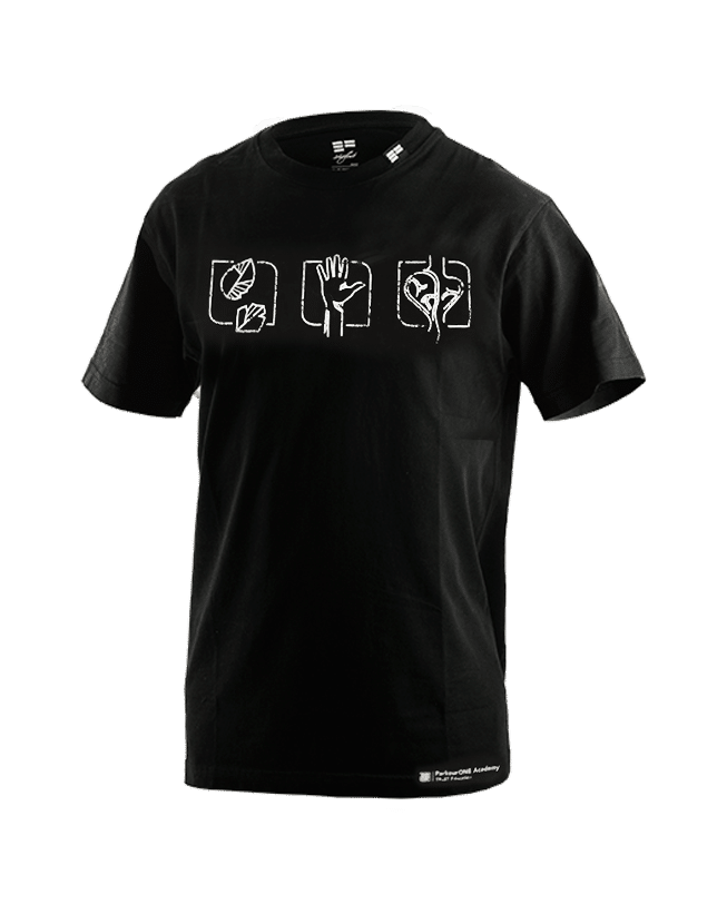 +Entwicklung des eigenen Potenzials, Werte und Gesundheitsförderung – das sind die Bildungsziele von ParkourONE. Alle drei findest du auf dem Vision Shirt.